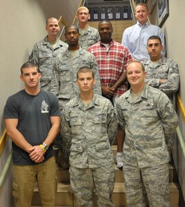 Col. Edsel "Archie" Frye, Jr., 931st Air Refueling Group commander (center) listens as Col. Jamie Crowhurst, 22nd Air Refueling Wing commander (left) briefs civic leaders here on May 24. The civic leaders, members of Friends of McConnell, visit McConnell every two months meeting with wing leadership