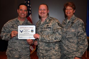 Several members of the Air Force Reserve 931st Air Refueling group were recognized during a Commander's Call conducted at the base theater here today. Col. Mark S. Larson, 931 ARG commander, began the ceremony by presenting a trophy and congratulatory letter from Lt. Gen. James Jackson, chief of Air
