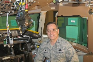 Col. Mark S. Larson poses with a future "member" of Team McConnell, Jan. 19, 2017, at the Boeing Facility located in Everett, Wash. The KC-46A Pegasus is the first of the next-generation tankers scheduled to be delivered to the base later this year. The new aircraft will eventually replace the Air